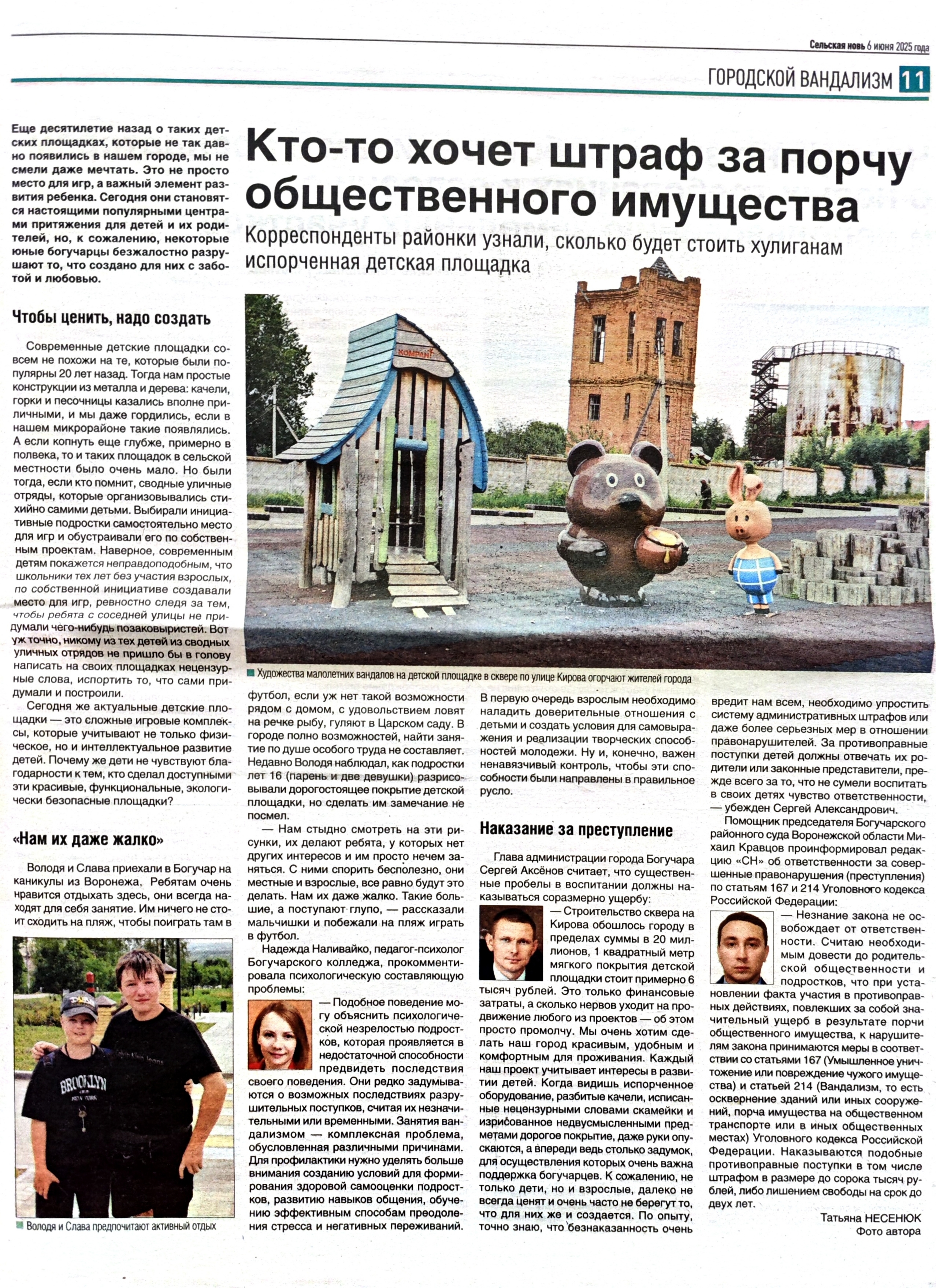 | "Кто хочет штраф за порчу общественного имущества" статья газеты "Сельская Новь" выпуск № 22 от 06.06.2025 года | версия для печати |